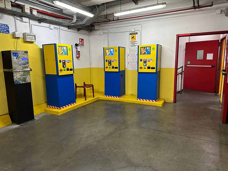 - Al termine della sosta, prima di lascia il parcheggio, recati alla cassa presidiata situata al piano –1. Mostrando il ticket e la prenotazione, il personale validerà l’uscita.